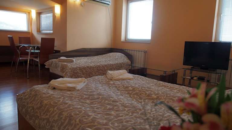 Hotel Maria bietet eine Terrasse und klimatisierte Zimmer mit kostenlosem WLAN. Die Unterkunft hat eine freundliche Rezeption, die Informationen zur Umgebung bereitstellt. Das Hotel spricht mehrere Sprachen, darunter Bulgarisch, Englisch und Russisch.
