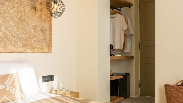 Das Hotel liegt in Glastros, einer ruhigen Gegend, nur 5 Minuten vom Sandstrand entfernt. In der Umgebung gibt es verschiedene Einkaufsmöglichkeiten und das Stadtzentrum von Megali Ammos ist etwa 2 km entfernt.