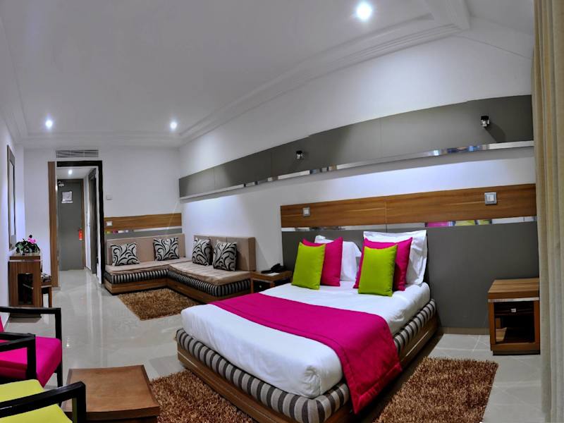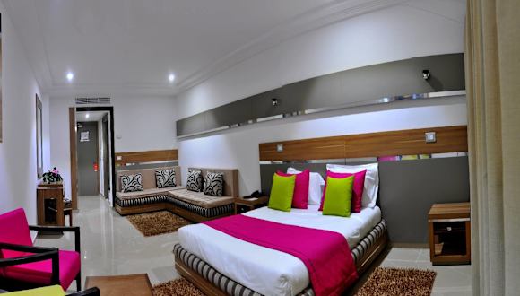 Die Zimmer sind klimatisiert und verfügen über einen Balkon oder eine Terrasse mit Stadt- oder Meerblick. Zur Ausstattung gehören ein Doppelbett, ein Schreibtisch, ein Safe, eine Minibar sowie eine Kochnische mit Kühlschrank und Mikrowelle. Ein TV mit Satellitenempfang ist ebenfalls vorhanden. In den Badezimmern gibt es sowohl eine Dusche als auch eine Badewanne sowie einen Haartrockner und Kosmetikartikel. Es sind auch Zimmer für Familien und Nichtraucher verfügbar.