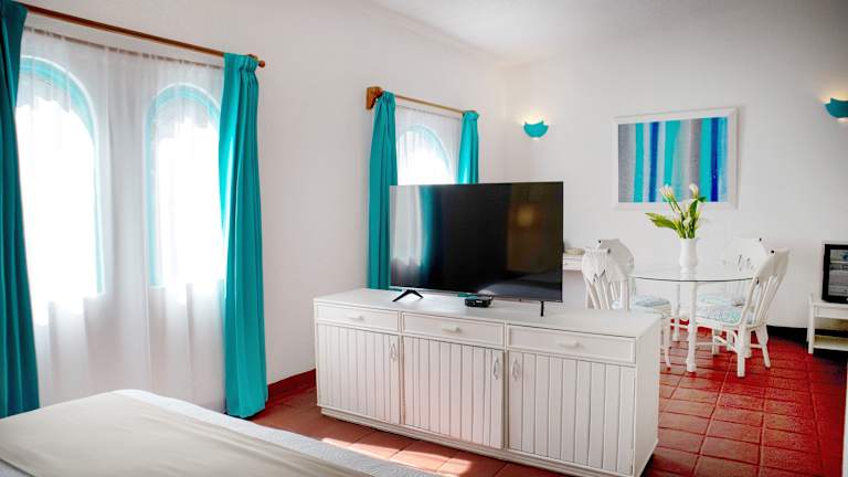 Die Zimmer sind mit Klimaanlage, Balkon oder Terrasse mit Meerblick, einem Doppelbett, Queensize-Bett oder Kingsize-Bett ausgestattet. Zur Standardausstattung gehören ein Safe, eine Minibar, ein Minikühlschrank, ein Direktwahltelefon und ein TV-Gerät mit Kabelanschluss. Die Badezimmer sind mit Dusche und Badewanne ausgestattet.