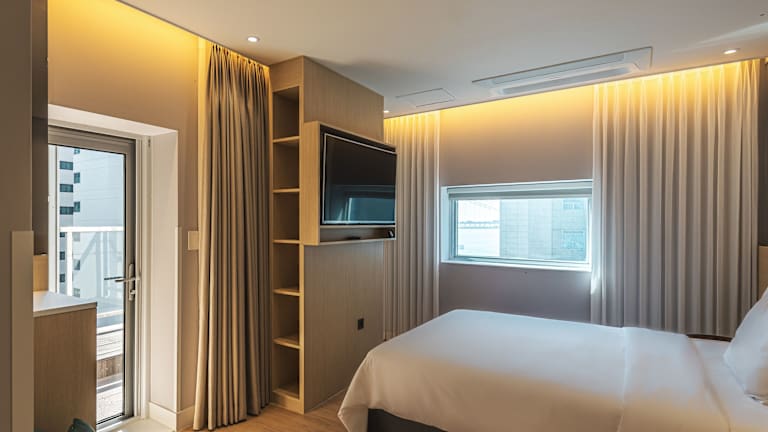 Die Unterkunft befindet sich in Busan, nur 200 m vom Strand Gwangalli entfernt. In der näheren Umgebung befinden sich das Kunstmuseum Busan (2,6 km), das Busan Cinema Centre (2,7 km) und Centum City (2,8 km). Das Kaufhaus Shinsegae Centum City liegt 2,9 km entfernt, während das Ausstellungs- und Kongresszentrum Busan (BEXCO) 3,3 km entfernt ist. Der Flughafen Gimhae ist 22 km entfernt.