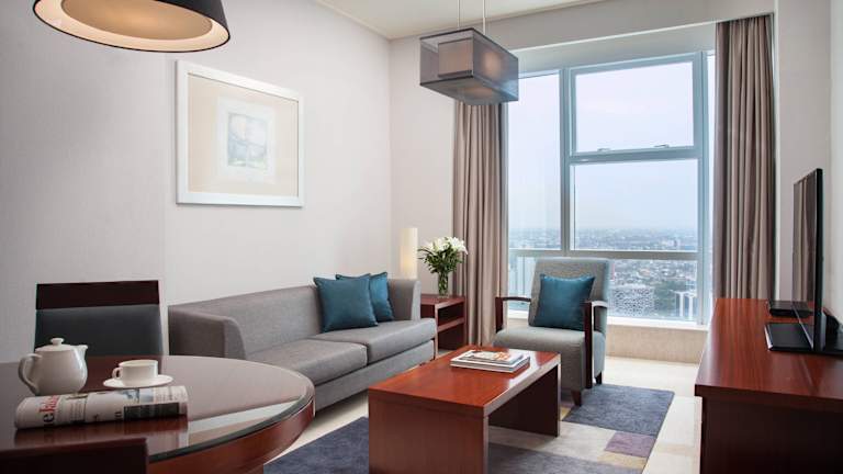 Die 96 geräumigen Zimmer im Mayflower, Jakarta-Marriott Executive Apartments bieten luxuriösen Komfort und sind mit modernen Annehmlichkeiten ausgestattet. Jedes Zimmer verfügt über eine voll ausgestattete Küche, einen Flachbild-Kabel-TV und kostenfreies WLAN. Einige Zimmer bieten zudem einen herrlichen Blick auf die Stadt und einen separaten Sitzbereich. Das eigene Badezimmer ist mit einer Badewanne und einer Dusche ausgestattet.