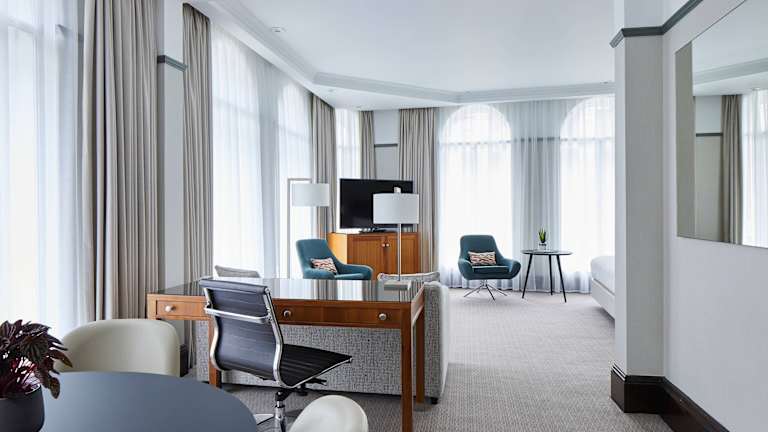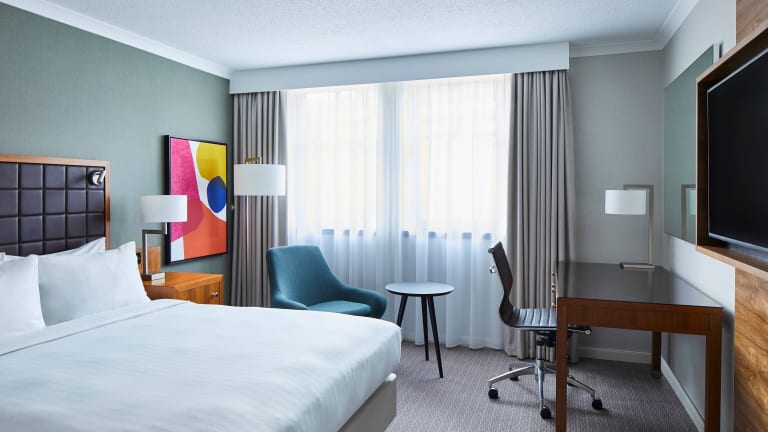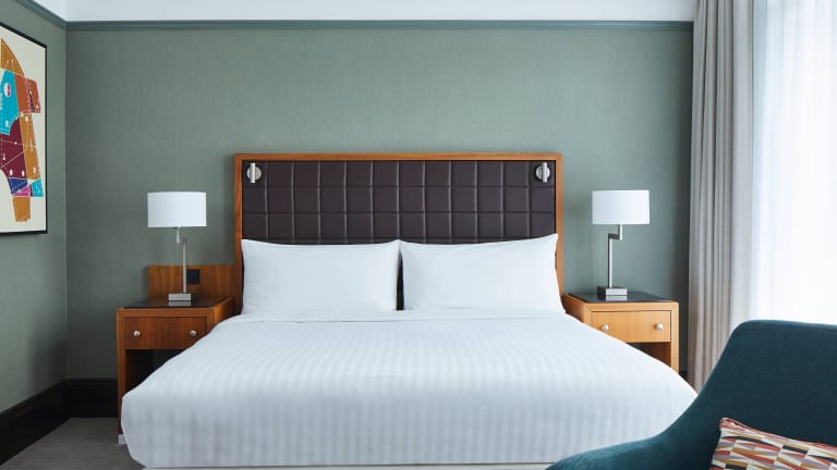 Die klimatisierten Zimmer im Marriott Hotel bieten den Gästen einen angenehmen Aufenthalt. Jedes Zimmer verfügt über einen Flachbild-TV, Tee- und Kaffeezubehör sowie moderne Annehmlichkeiten.