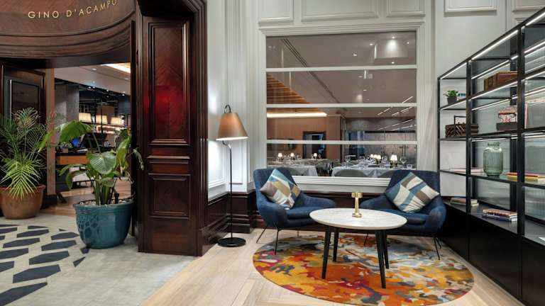 Das hoteleigene Restaurant Gino D'Acampo ist bekannt für seine exzellente italienische Küche. Gäste können im stilvollen und offenen Restaurant, in der Lounge, in der Cicchetti-Bar oder auf der beheizten Außenterrasse speisen und den luxuriösen Glamour genießen. Ein reichhaltiges Frühstücksbuffet wird angeboten und Mittag- und Abendessen werden à la carte serviert.