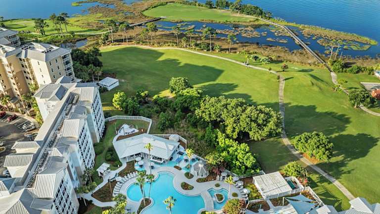 Das Marriott's Legends Edge at Bay Point liegt im Herzen der St. Andrew's Bay in Panama City Beach. Die Strände der Smaragdküste sind nur eine 20-minütige Autofahrt entfernt. Die Lage des Hotels bietet einen atemberaubenden Blick auf die Lagune und das Resort und ist ideal für einen erholsamen Urlaub.