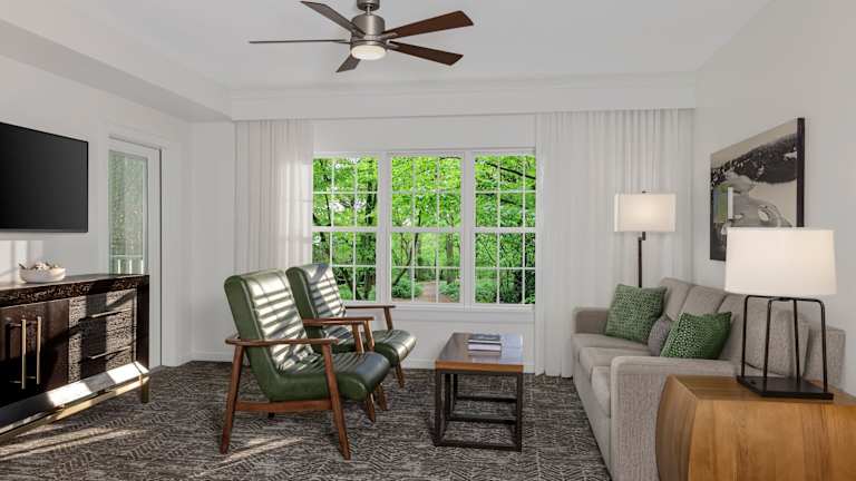 Die geräumigen Villen im Marriott's Fairway Villas verfügen über 2 Schlafzimmer, eine voll ausgestattete Küche und einen eigenen Balkon. Jede Villa ist mit drei Kabel-TVs mit HBO, einem separaten Wohnbereich und einem eigenen Bad ausgestattet. Die Villen bieten viel Platz und Komfort für einen erholsamen Aufenthalt.