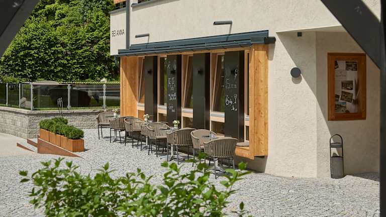 Ein Hotel direkt an der Skipiste mit einem herrlichen Ausblick ins Tal. Man wird im Hotel verwöhnt, vor allem auch durch den offeneren Eingangsberiech und dem Café bei Anna.