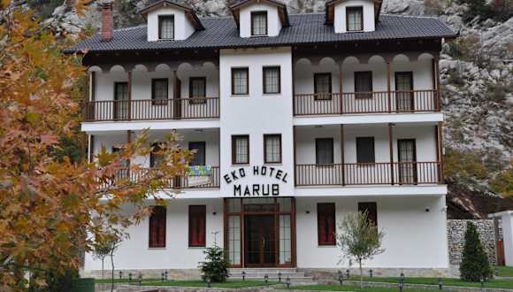 Das Hotel Marub befindet sich in einem bewaldeten Tal, umgeben von Bergen, in der Region Mirdita. Es liegt etwa 2 km von der Landesstraße SH30 entfernt. Die Küste der Adria und die Stadt Lezhë sind ca. 30 km entfernt, während die Hauptstadt Tirana in etwa 70 km Entfernung liegt. Die Lage des Hotels bietet Ruhe und Naturverbundenheit sowie die Möglichkeit, die umliegende Region zu erkunden.
