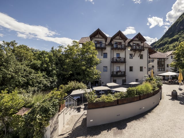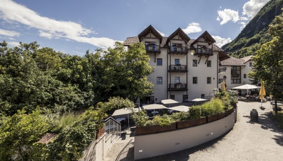 Das Hotel Masatsch liegt im sonnigen Oberplanitzing bei Kaltern in Südtirol. Inmitten von Weinbergen und südlicher Vegetation.