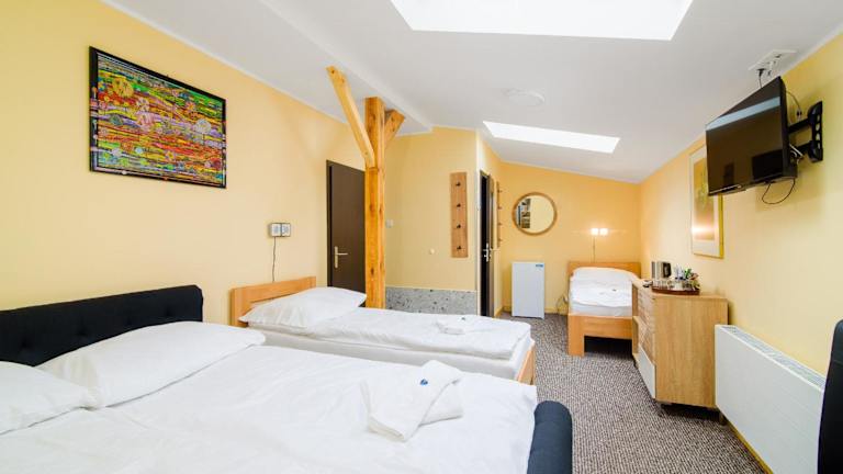 Die Zimmer im Hotel Max sind zweckmäßig eingerichtet und bieten Ihnen alles, was Sie für einen angenehmen Aufenthalt benötigen. Jedes Zimmer verfügt über einen TV mit tschechischen, englischen, deutschen und russischen Kanälen. Im Badezimmer finden Sie entweder eine Dusche oder eine Badewanne sowie kostenfreie Pflegeprodukte.
