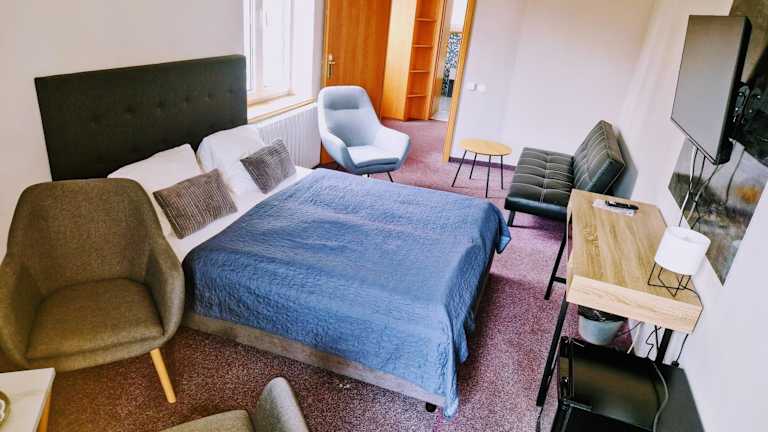 Die Zimmer im Family Hotel Maxim sind geschmackvoll eingerichtet und verfügen über einen Balkon, von dem aus Sie eine herrliche Aussicht auf den Fluss Berounka oder die Stadt genießen können. Jedes Zimmer ist mit einem LCD-TV mit 150 Kanälen und kostenfreiem WLAN ausgestattet.