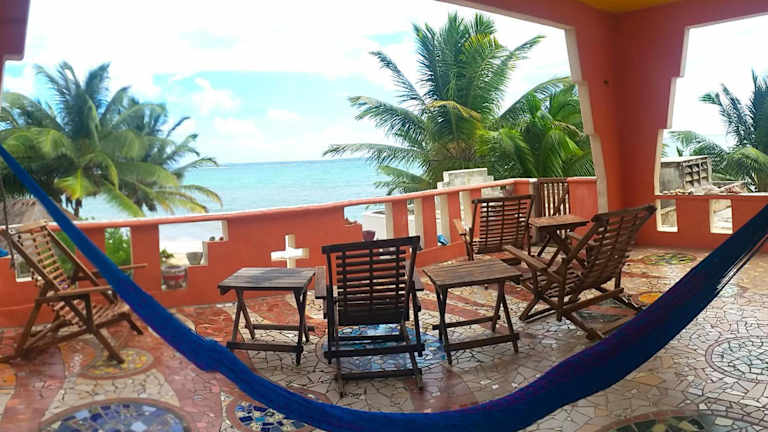 Das Mayan Beach Garden liegt etwa 30 Fahrminuten von Mahahual und Costa Maya entfernt und bietet eine abgeschiedene Lage direkt am Strand. Die Unterkunft ist ideal für Gäste, die eine ruhige und erholsame Umgebung suchen. In der Nähe gibt es Möglichkeiten zum Schnorcheln und Angeln in der Küste oder der Lagune.