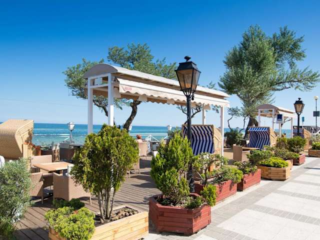 Im Hotel Meduza wird ein abwechslungsreiches Frühstücksbuffet angeboten. Das Restaurant mit Glaswänden serviert Gerichte aus Frankreich sowie der europäischen Küche. Die Sommerterrassen laden mit einem Panoramablick auf das Meer zum Genießen der Speisen ein.