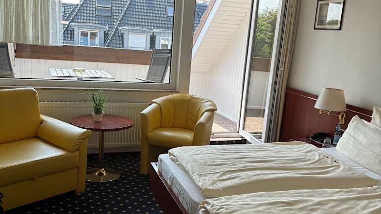 Die Zimmer im Hotel Meeresruh Garni sind modern und komfortabel eingerichtet. Sie verfügen über Annehmlichkeiten wie einen Schreibtisch, einen Flachbild-TV und ein eigenes Bad. Bettwäsche und Handtücher werden gestellt und in einigen Zimmern gibt es sogar einen Balkon. Jedes Zimmer ist mit einem Safe, einem Kleiderschrank und einem Wasserkocher ausgestattet, um den Gästen einen angenehmen Aufenthalt zu bieten.