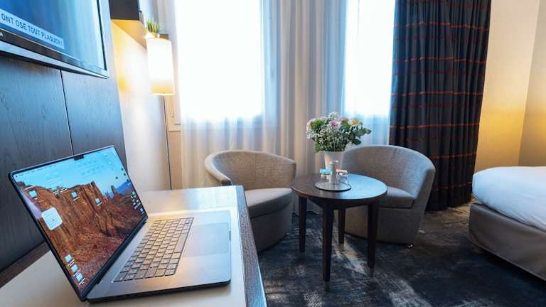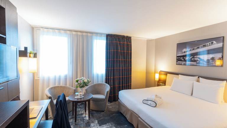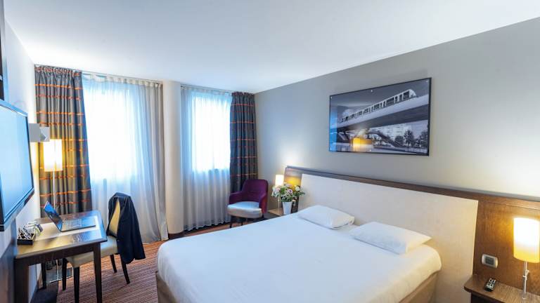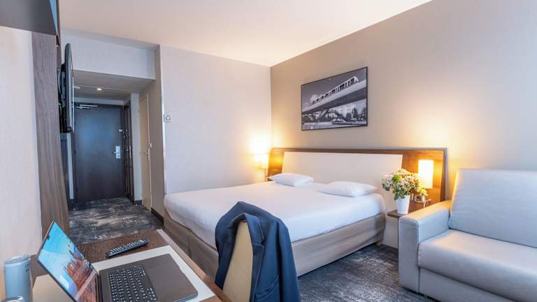 Die Zimmer im Hotel sind mit Klimaanlage, Heizung, einem Doppelbett oder einem Sofabett sowie mit einem Safe, Schreibtisch und einer Tee-/Kaffeemaschine ausgestattet. Zudem verfügen sie über ein Badezimmer mit Dusche oder Badewanne und Haartrockner. WLAN ist in den Zimmern kostenfrei verfügbar. Es gibt auch rollstuhlgerechte Zimmer mit barrierefreiem Bad. Familien- und Nichtraucherzimmer sind ebenfalls verfügbar.