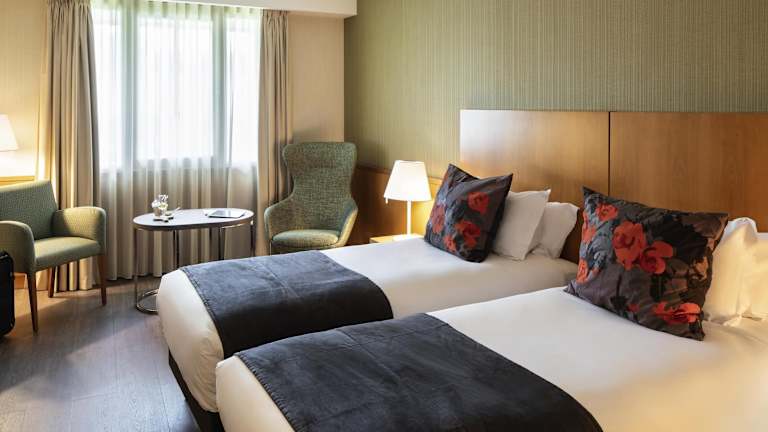 Das Hotel bietet 104 Zimmer auf 5 Etagen, die mit einem Aufzug erreichbar sind. Die Zimmer sind modern eingerichtet und klimatisiert. Zur Ausstattung gehören ein Schreibtisch, eine Minibar und ein eigenes Badezimmer.