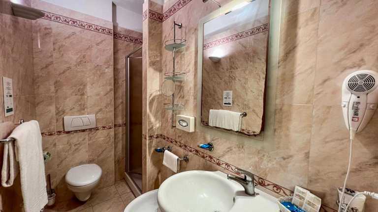 Die Zimmer im Hotel Meridiana sind klimatisiert und verfügen über einen Balkon, auf dem Sie die frische Meeresbrise genießen können. Sie sind mit einem eigenen Bad, einem 32-Zoll-Flachbild-TV und einem kleinen Kühlschrank ausgestattet. Jedes Badezimmer bietet einen Haartrockner und kostenlose Pflegeprodukte.