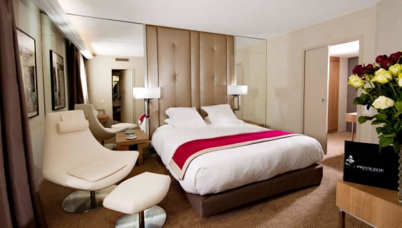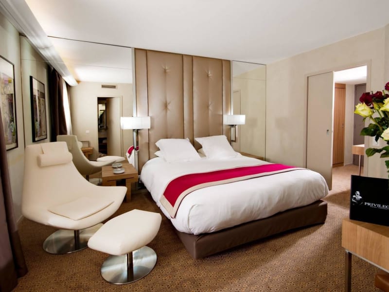 Die Zimmer sind mit einer Klimaanlage und individuell regulierbarer Heizung ausgestattet. Sie verfügen über Teppichboden, ein Doppelbett oder ein Sofabett, einen Safe, eine Minibar, einen Schreibtisch, eine Tee-/Kaffeestation und ein Bügelset. Ein Telefon mit Direktwahl, ein TV-Gerät mit Satelliten-/Kabelempfang, ein Radio und WLAN sind ebenfalls vorhanden. Die Badezimmer sind mit einer Dusche oder Badewanne ausgestattet, zudem gibt es Haartrockner und Kosmetikartikel. Es stehen auch rollstuhlgerechte Zimmer zur Verfügung.