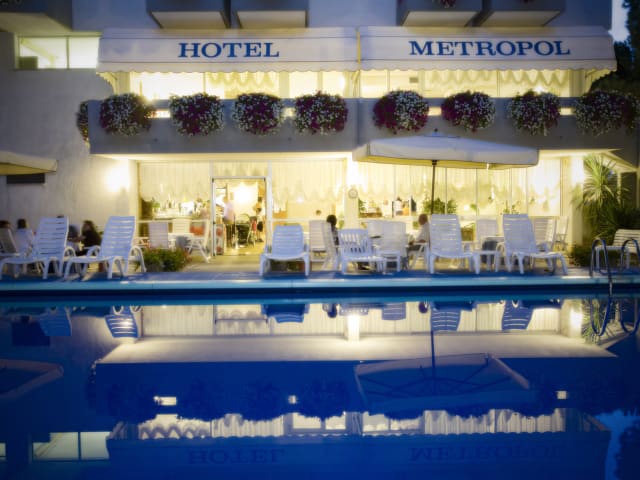 Situato a soli 30 mt. dal mare e 250 mt. dal centro storico, l’ hotel Metropol è dotato di tutti i confort, di attrezzature ricreative e sportive atte a soddisfare qualsiasi esigenza. Tutte le camere dispongono di servizi privati, balcone, aria condizionata, telefono, asciugacapelli e televisione a ricezione satellitare. Sala soggiorno, bar, ascensore. I prezzi comprendono l’ uso della piscina temperata con jacuzzi, palestra, tennis, biciclette, giochi per bambini, parcheggio, spiaggia privata con ombrellone e lettini da sole, WI FI in tutta la struttura. TUTTI I SERVIZI DELL’HOTEL SONO COMPRESI NEL PREZZO ESCLUSE LE BEVANDE.. Il ristorante offre un menù a la carte con molti piatti tipici della cucina veneta; ricca colazione a buffet. Disponiamo inoltre di un ristorantino snack nel giardino della piscina, aperto tutti i mezzogiorni. L’ ambiente ospitale ed un servizio premuroso e cortese, sempre attento alle Vs. esigenze, contribuiranno a rendere la Vs. vacanza piacevole e rilassante.