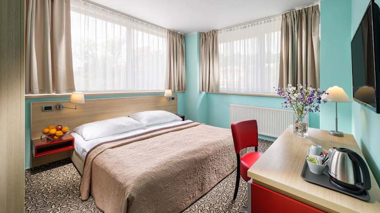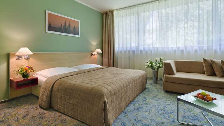 Das Hotel befindet sich in einem ruhigen Viertel in Prag, das bequem mit öffentlichen Verkehrsmitteln in etwa 20 Minuten vom Zentrum aus erreichbar ist. In der Umgebung gibt es verschiedene Sehenswürdigkeiten und Attraktionen zu entdecken. Der Bahnhof und das Stadtzentrum von Prag sind etwa 17 km entfernt.