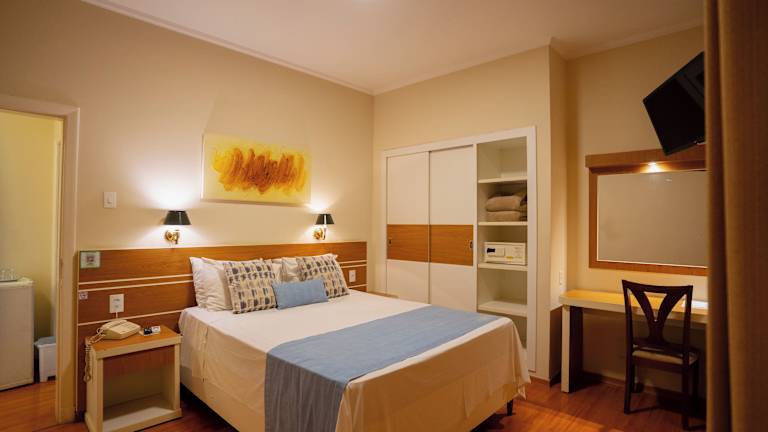 Die Zimmer im Hotel Minas Gerais sind modern und sauber eingerichtet. Sie verfügen über eine Klimaanlage, einen Fernseher, eine Minibar und einen Deckenventilator. Ein privates Badezimmer mit Dusche ist ebenfalls vorhanden.