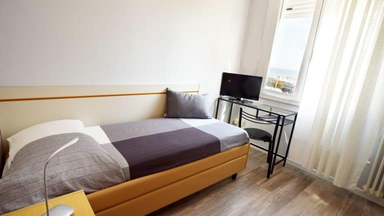 Das Hotel Mirabella liegt nur 5 Fahrminuten vom Zentrum von Riccione entfernt und ist auch vom Flughafen Rimini Fellini leicht zu erreichen. Der Strand ist nur 50 m entfernt, was den Gästen einen einfachen Zugang zu Sonne, Sand und Meer ermöglicht. In der Nähe gibt es auch viele Restaurants, Bars und Geschäfte, die zu einem angenehmen Aufenthalt beitragen. Die Lage des Hotels ist auch günstig für Ausflüge in die Umgebung, da das Zentrum von Rimini nur 9 km entfernt ist und die Autobahn A14 in nur 10 Minuten mit dem Auto zu erreichen ist.