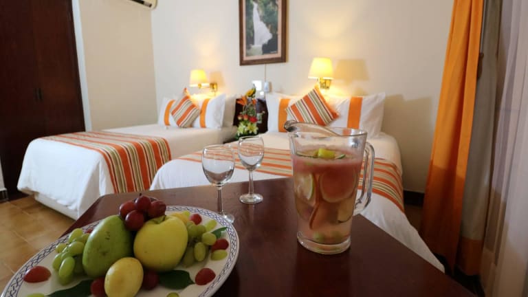 Das Hotel Misión Jalpan liegt in unmittelbarer Nähe des Flusses Jalpan und bietet eine idyllische Umgebung für einen erholsamen Aufenthalt. In ca. 30 Gehminuten erreichen Sie eine zentrale Bushaltestelle und das Touristenzentrum von Mision de Jalpan ist nur etwa 100 m vom Hotel entfernt. Die öffentlichen Verkehrsmittel sind nach ca. 1 km erreichbar und die Cueva del Puente de Dios, eine natürliche Höhle, ist etwa 15 km entfernt. Die Stadt Rio Verde ist in etwa 90 km zu erreichen. In der Umgebung gibt es auch beeindruckende Felsformationen wie den Felsen von Bernal oder den Monolithen Peña de Bernal zu bewundern. Ein weiteres Highlight ist der höchste Punkt von La Sierra, Puerta del cielo, der besucht werden kann.