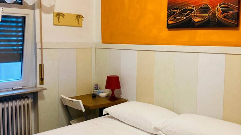 Die Zimmer im Hotel Moderno sind unter anderem mit einem Kleiderschrank ausgestattet.
