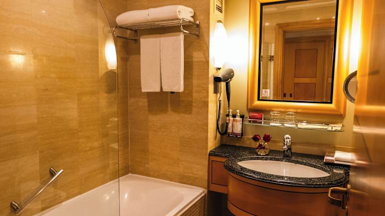 Die geräumigen Zimmer im Mövenpick Hotel sind modern und stilvoll eingerichtet und bieten einen komfortablen Rückzugsort nach einem langen Tag in der Stadt. Die Zimmer sind mit eleganten Möbeln und warmen Farben gestaltet und bieten entweder einen atemberaubenden Blick auf die Bucht von Doha oder die Stadt. Einige Zimmer verfügen auch über einen separaten Sitzbereich.
