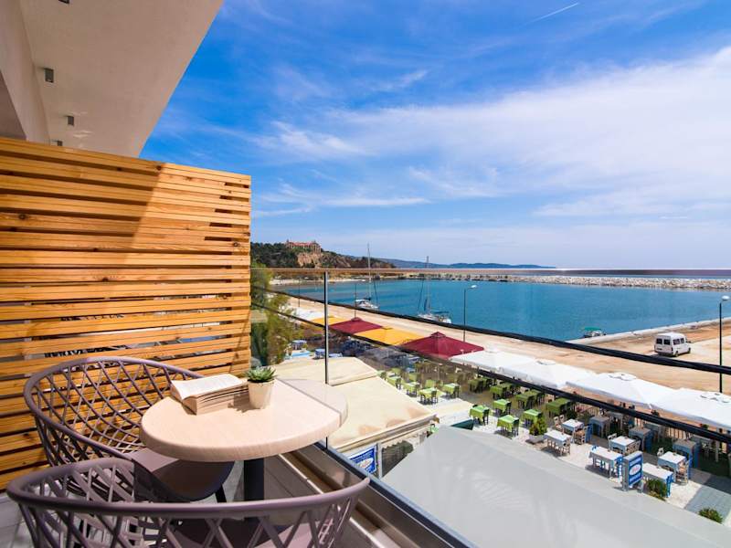 Die klimatisierten Zimmer im Molos Hotel sind hell und luftig gestaltet und verfügen über einen eigenen Balkon, von dem aus Sie den Blick auf die Ägäis genießen können. Zur Ausstattung gehören ein Flachbild-TV, ein Minikühlschrank, ein Safe und ein Haartrockner.