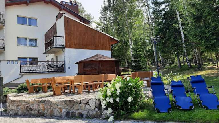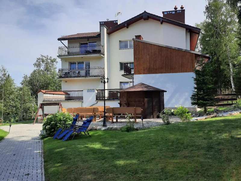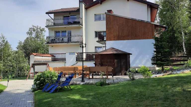 Das Hotel Monali in Karpacz bietet eine ruhige und grüne Lage sowie kostenfreies WLAN und Privatparkplätze. Die Zimmer sind klassisch und hell eingerichtet und verfügen über einen Flachbild-Sat-TV. Das Hotel bietet zudem einen Garten mit Grillmöglichkeiten, einen Kinderspielplatz und einen Bereich für Lagerfeuer. Gäste haben Zugang zu einer Gemeinschaftsküche und einem Essbereich. Die Lage des Hotels ermöglicht es, den Nationalpark Riesengebirge und das Spielzeugmuseum in kurzer Entfernung zu erkunden.