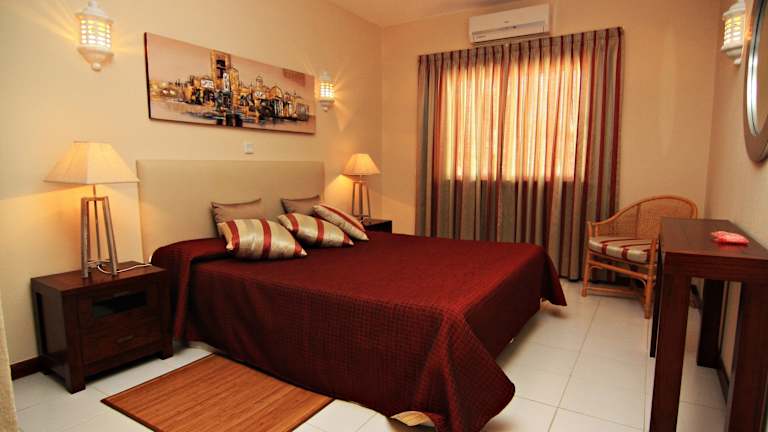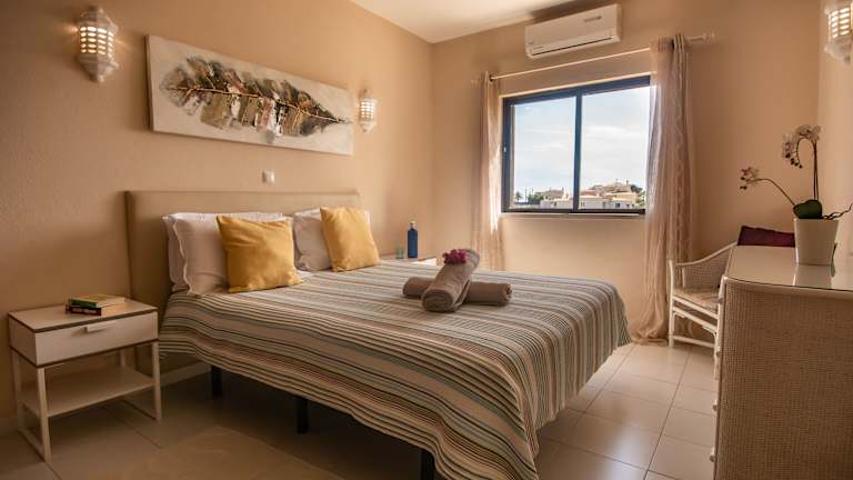 Das Monte Dourado verfügt über 109 traditionell eingerichtete Apartments zur Selbstverpflegung. Jedes Apartment ist mit einem Wohnzimmer, einer gut ausgestatteten Küche und einem Badezimmer ausgestattet. Zur weiteren Ausstattung gehören Sat-TV, ein Esstisch und ein großer Sitzbereich mit bequemen Sesseln. Die Küche verfügt über einen traditionellen Backofen und eine Waschmaschine. Ein Balkon oder eine Terrasse bieten einen herrlichen Blick auf das Meer.