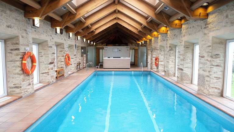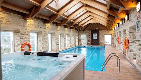Das Hotel verfügt über einen beheizbaren Innenpool und einen Whirlpool, in denen die Gäste aktive Erholung und Entspannung genießen können. Auf der Terrasse können Sie die Sonne genießen und den Blick auf die Umgebung genießen. Das Hotel bietet auch verschiedene Aktivitäten wie Radfahren/Mountainbiking, Golfen, Spa und Hydrotherapie-Anwendungen an. Für Familien gibt es einen separaten Kinderpool.