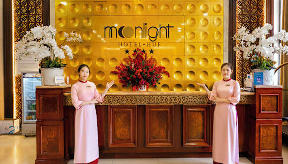 Das Moonlight Hotel Hue ist ein modernes Hotel im Herzen von Hue, das mit einem Innenpool und geschmackvoll eingerichteten Zimmern überzeugt. Die günstige Lage ermöglicht es den Gästen, sowohl die Stadt als auch den Strand von Thuan An schnell zu erreichen. Freuen Sie sich auf entspannende Massagen im Spa und den freundlichen Service des 24-Stunden-Rezeptionsteams. Genießen Sie lokale und internationale Küche im Hotelrestaurant und entspannen Sie in den beiden Bars.