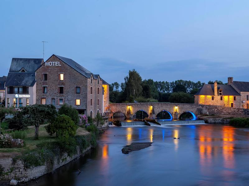 Das Best Western Le Moulin de Ducey ist ein charmantes Hotel in einer ehemaligen Mühle am Ufer des Flusses Sélune. Es bietet eine ideale Lage, nur 20 Fahrminuten von der Abtei Mont-Saint-Michel entfernt. Die Zimmer sind komfortabel und verfügen über kostenfreies WLAN und einen Flachbild-Sat-TV. Genießen Sie den Blick auf den Fluss Sélune von den meisten Zimmern aus. Das Hotel bietet ein köstliches Frühstücksbuffet und serviert auch Abendessen. Entspannen Sie in der Bar und entdecken Sie regionale Produkte, die im Hotel erhältlich sind. Nutzen Sie die Privatparkplätze am Hotel und erkunden Sie die Umgebung bei Wanderungen und Radtouren.