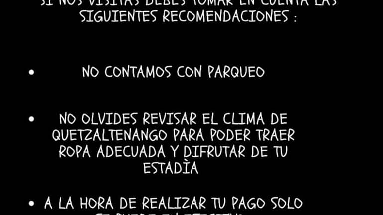 Das Hotel Muchá liegt nur 400 m vom Zentralpark Quetzaltenango entfernt und bietet eine günstige Lage für Erkundungen in der Stadt. In der Umgebung gibt es zahlreiche Restaurants, Geschäfte und Sehenswürdigkeiten, die leicht zu Fuß zu erreichen sind. Die Lage des Hotels ermöglicht es den Gästen, die Schönheit der Natur in der Umgebung zu genießen und gleichzeitig die Annehmlichkeiten der Stadt in der Nähe zu haben.