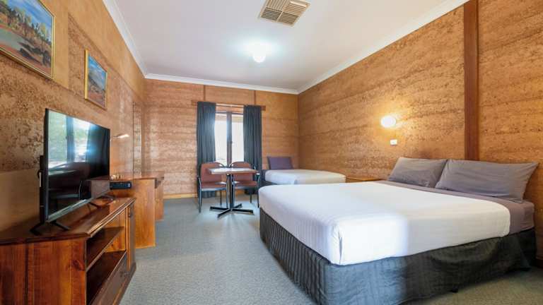 Das Mud Hut Motel bietet komfortable Unterkünfte auf einer Ebene, die alle klimatisiert sind und einen Parkplatz direkt vor der Tür bieten. Die Zimmer verfügen über ein eigenes Bad, einen Kühlschrank und einen Schreibtisch. Für Unterhaltung sorgt ein Flachbild-TV mit integriertem Media-Player.