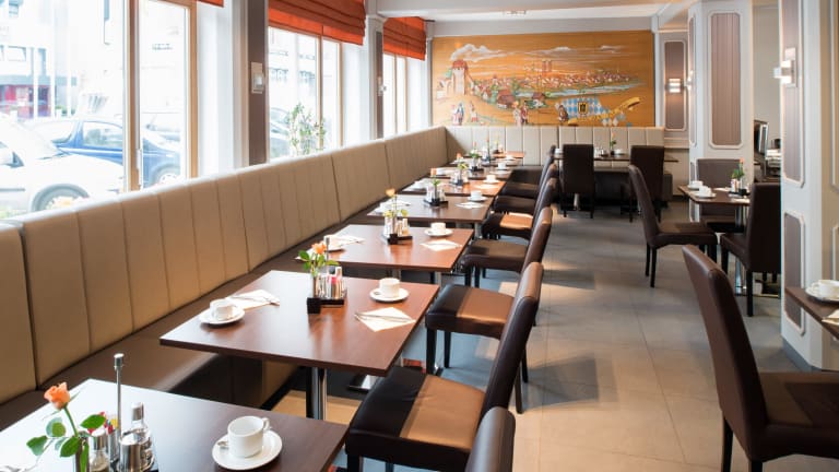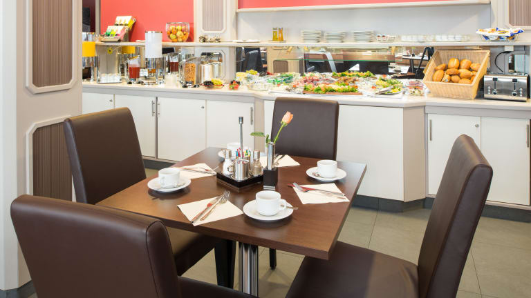 Im Frühstückszimmer des Hotels wird jeden Morgen ein reichhaltiges Frühstücksbuffet serviert, das den Gästen einen guten Start in den Tag bietet. An der Bar oder in der Lounge können die Gäste Getränke genießen.