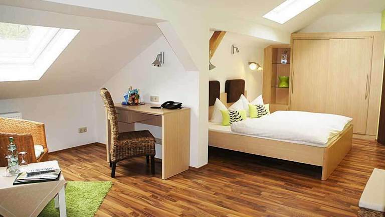 Die Zimmer im Hotel Muschinsky sind geräumig und bieten große Fenster, die viel Tageslicht hereinlassen. Jedes Zimmer ist mit einem TV, einem Schreibtisch, einer Minibar und einem eigenen Bad mit Haartrockner ausgestattet. Einige Zimmer verfügen auch über einen Balkon, auf dem Sie die frische Luft und den Blick auf die Umgebung genießen können.