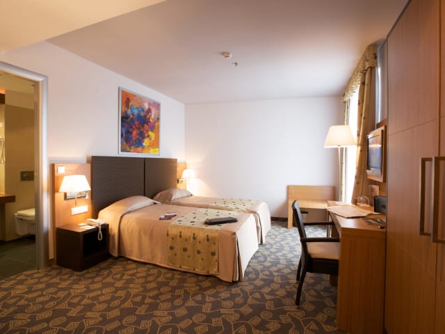 Das Hotel bietet insgesamt 104 Zimmer auf 9 Etagen, die mit einem Aufzug erreichbar sind. Die Zimmer verfügen über eine individuell steuerbare Klimaanlage und Heizung sowie einen Balkon, von dem aus Sie die schöne Aussicht genießen können. Zur Standardausstattung gehören auch ein Safe, eine Minibar, ein Schreibtisch und eine Tee-/Kaffeemaschine. Ein Telefon mit Direktwahl, ein TV-Gerät mit Satelliten-/Kabelempfang, ein Radio und kostenfreies WLAN stehen ebenfalls zur Verfügung. Die Badezimmer sind mit einer Dusche, einer Badewanne, einem Haartrockner und Bademänteln ausgestattet. Rollstuhlgerechte Zimmer mit barrierefreien Bädern sind ebenfalls verfügbar.