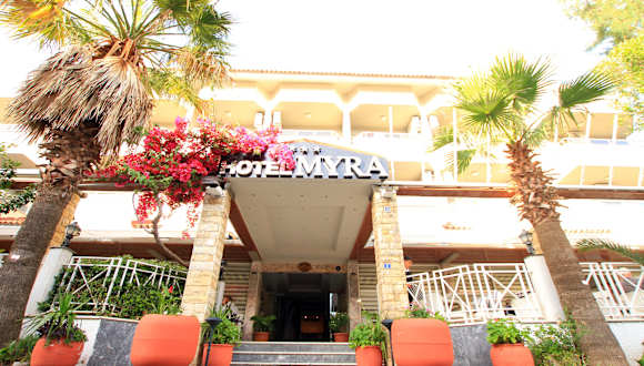 Das Myra Hotel verfügt über 70 Nichtraucherzimmer, die sich auf ein 5-stöckiges Haupthaus und ein 4-stöckiges Nebengebäude verteilen. Die Zimmer sind komfortabel und bieten Annehmlichkeiten wie Sat-TV und einen eigenen Balkon. WLAN ist in den öffentlichen Bereichen kostenlos verfügbar. Das Hotel bietet auch verschiedene Einrichtungen wie einen Supermarkt, einen Poolbereich im Freien mit separatem Kinderbecken, eine Sonnenterrasse und einen Aufzug. Parkplätze stehen gegen Gebühr zur Verfügung.