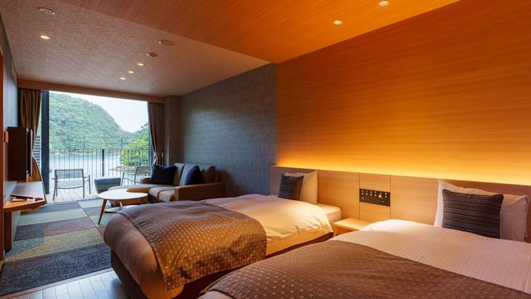 Das Hotel Kumano-bettei Nakanoshima liegt in Katsuura, nur eine 5-minütige Fahrt mit der Fähre vom Pier Kanko Sanbashi entfernt. Der JR-Bahnhof Kii-Katsura und das Kanko Sanbashi Pier sind zu Fuß erreichbar. Die Umgebung bietet eine Vielzahl von Aktivitäten, darunter den Besuch des Nachi-Wasserfalls und des Nachi Kumano Taisha-Schreins.