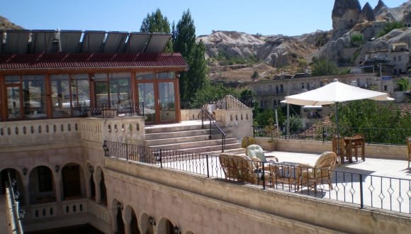 Das Nature Park Cave Hotel liegt nur wenige Gehminuten von Göreme entfernt, einem charmanten Dorf in der Region Kappadokien. Die Lage des Hotels bietet einen idealen Ausgangspunkt, um die atemberaubende Landschaft und die einzigartigen Felsformationen von Kappadokien zu erkunden. In der Nähe des Hotels finden Sie auch Restaurants, Geschäfte und andere Sehenswürdigkeiten.