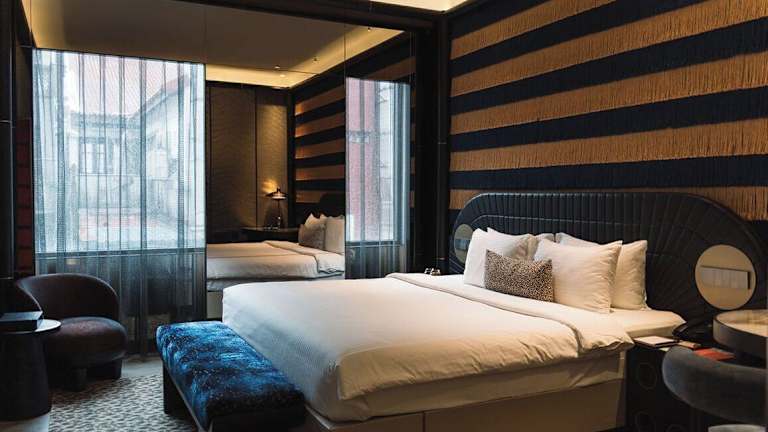 Das Naumi Hotel bietet seinen Gästen auf 10 Etagen insgesamt 40 stilvolle Zimmer. Jedes Zimmer verfügt über eine Klimaanlage, eine Kochnische mit Mikrowelle und Kaffeemaschine sowie einen Wohnbereich. Die Zimmer sind mit einem Kingsize-Bett ausgestattet und können auch Baby- und Zustellbetten auf Anfrage bereitstellen. Zur weiteren Ausstattung gehören ein Safe, eine Minibar, ein Schreibtisch, ein TV-Gerät, ein DVD-Player, WLAN und ein eigenes Badezimmer mit Dusche und Badewanne.