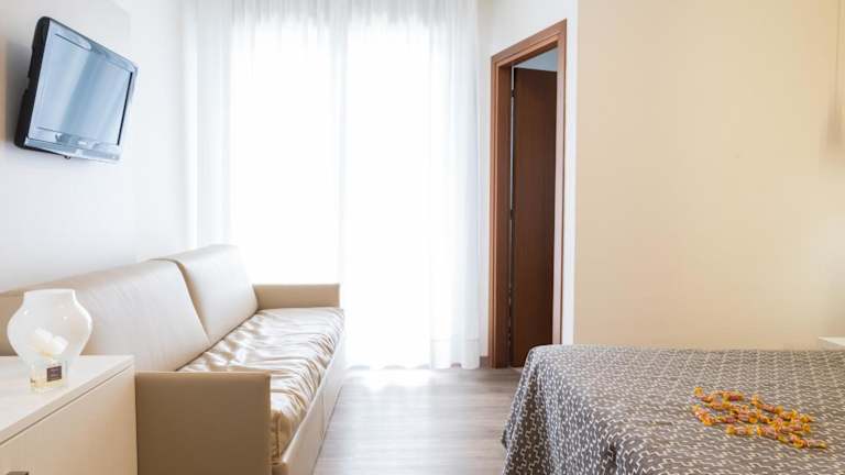 Das Hotel Nettuno bietet Ihnen Zugang zu einem eigenen Strandabschnitt, an dem Ihnen ein kostenfreier Sonnenschirm und 2 Sonnenliegen zur Verfügung stehen. Hier können Sie die Sonne genießen und sich im Meer erfrischen.