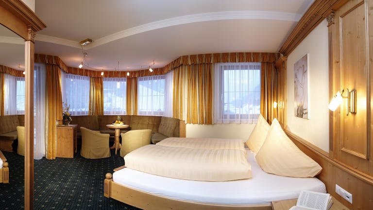 Das Hotel Nevada ist wie geschaffen für Menschen, die auch im Urlaub nicht auf Heimeligkeit und Individualität verzichten wollen. Überschaubar ist hier alles. Mit dem Aufzug gehts vom Zimmer in das Restaurant und weiter in den Relaxbereich und wieder zurück. Die Zimmer sind sehr, sehr großzügig gestaltet. Möbel aus dem Holz unserer Berge, natürlich und mit gesunder Austrahlung. Mit viel Platz zum Wohnen und Leben. Und mit allem Komfort unserer Zeit. WAS SIE SONST NOCH WISSEN SOLLTEN: Sämtliche Zimmer sind in Größe und Ausstattung für eine Belegung mit 3 Personen konzipiert (mit Doppelbett und einem Einzelbett) Auch eine Buchung als Einzelzimmer oder als Familienzimmer ist möglich. Alle Zimmer sind mit Farb-TV, Telefon, Dusche/WC und größtteils mit Balkon ausgestattet. Komfort und Qualität erfüllen all Ihre Erwartungen an ein erstklassiges 4-Sterne-Hotel