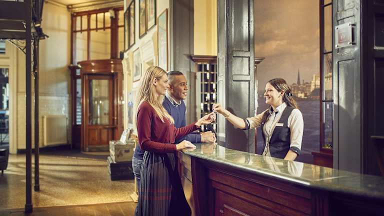 Im Hotel New York können Sie die schöne Terrasse nutzen, um die Sonne zu genießen und den malerischen Blick auf das Wasser zu bewundern. Das Hotel bietet auch einen Buch- und Geschenkeladen sowie einen Fahrradverleih, mit dem Sie die Umgebung erkunden können. Vom Hotel aus haben Sie einen herrlichen Blick auf die Skyline von Rotterdam, den Hafen und den Fluss. Mit dem Wassertaxi des Hotels gelangen Sie bequem zum Veerhafen oder ins Stadtzentrum.