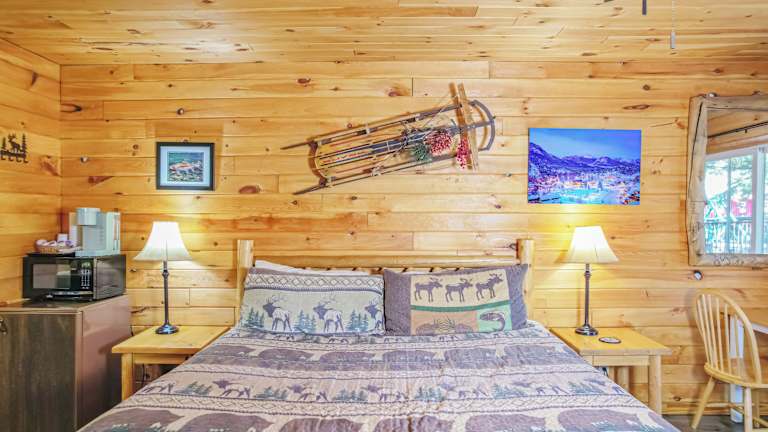 Die Zimmer im Nicky's Resort sind im charmanten Bergstil eingerichtet und verfügen über Kiefernholzmöbel, die eine gemütliche und rustikale Atmosphäre schaffen. Jedes Zimmer bietet auch Annehmlichkeiten wie Kabel-TV und einen Schreibtisch. Hier können Sie sich nach einem ereignisreichen Tag in den Bergen entspannen und den Komfort Ihres Zimmers genießen.