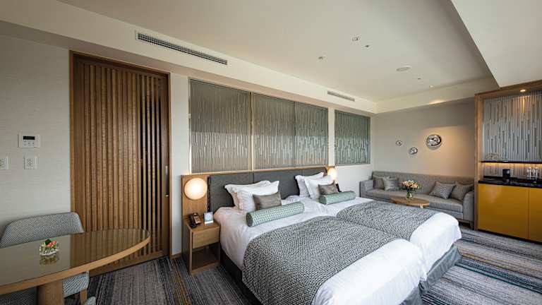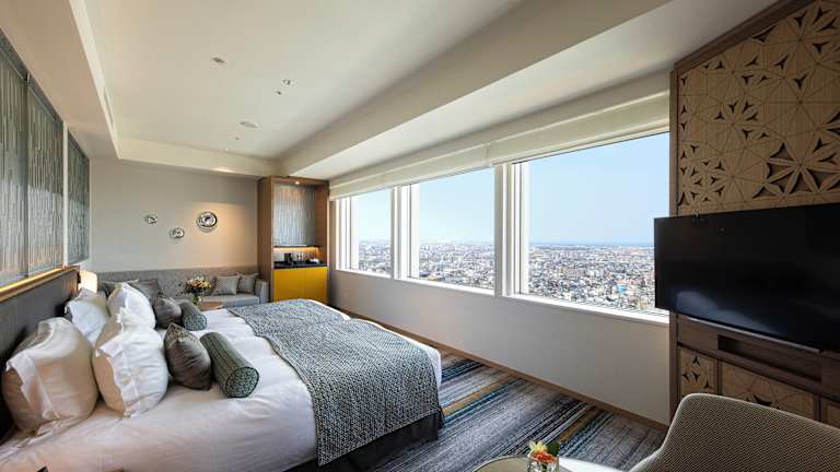 Die geräumigen Zimmer im Hotel Nikko Kanazawa bieten einen atemberaubenden Blick auf die Stadt. Alle Zimmer sind klimatisiert und verfügen über ein eigenes Badezimmer mit Badewanne und Dusche. Zur Ausstattung gehören auch ein Flachbild-TV, eine Minibar und kostenfreies WLAN.