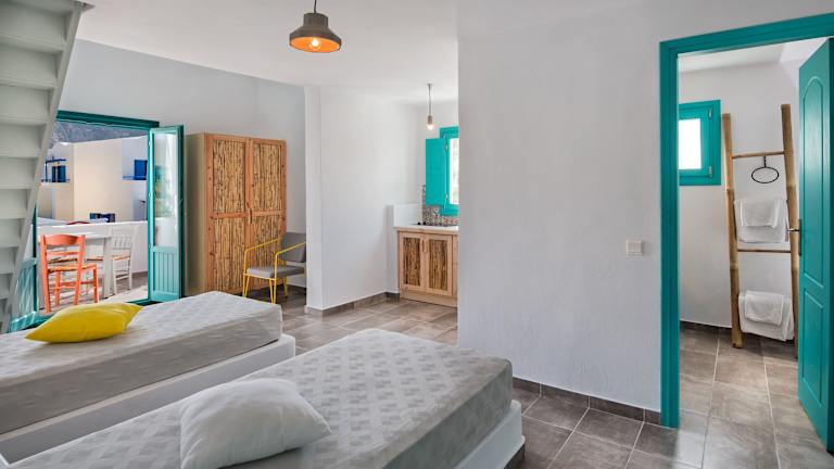 Das Nissia Beach Apartments & Suites bietet eine Vielzahl von Unterkunftskategorien, darunter Studios, Apartments und Maisonetten. Jede Unterkunft verfügt über eine Küchenzeile, einen Kühlschrank und Klimaanlage für Ihren Komfort. Wählen Sie zwischen traditionellen Studios mit einem Sitzbereich, geräumigen Apartments mit einem Wohnzimmer oder Maisonetten mit einem zweiten Schlafzimmer im Obergeschoss. Genießen Sie den Meerblick von Ihrem eigenen Balkon oder Ihrer Terrasse.